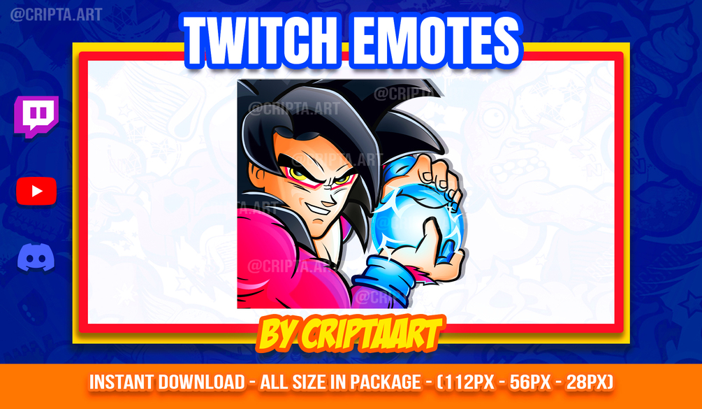 Goku Super Saiyan 4 Twitch Emote, Kame Hame Ha Emoji, Dragon Ball GT, ssj 4, Anime, icons for stream, discord, kick, youtube, tiktok