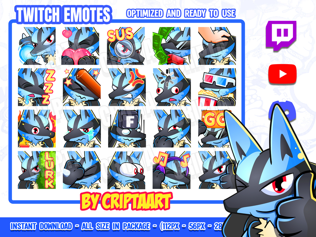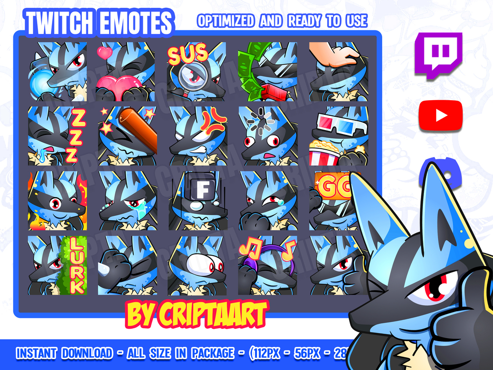Lucario Twitch Emotes Mega Pack (Discord, Youtube, Kick, and more)